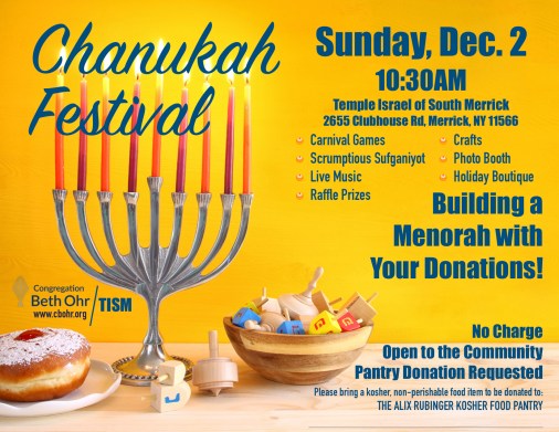 Sunday Dec. 2 @ 10:30 a.m. – Chanukah Festival at Temple Israel of South Merrick