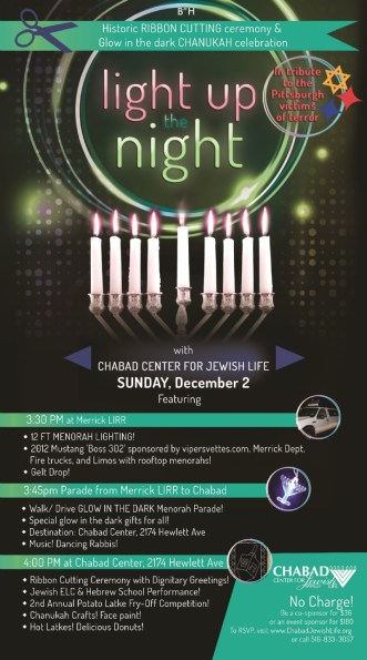 Mon. Dec. 10 @ 5:45 p.m. – Chanukah Menorah Lighting and Islanders Game at the Coliseum
